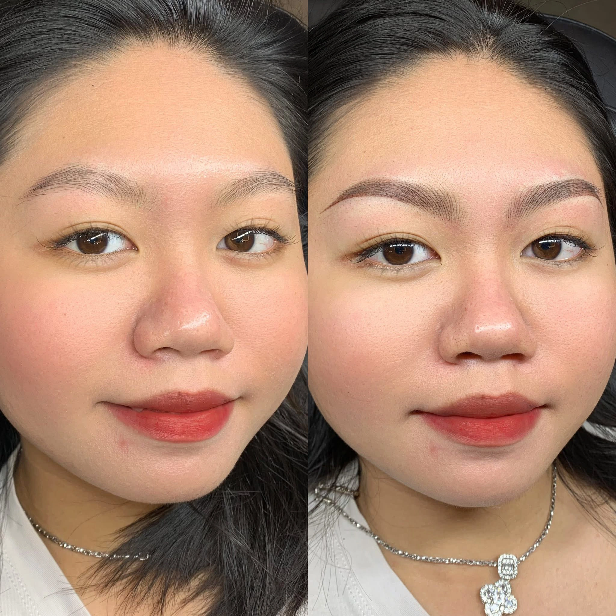 Angel Brows là dáng chân mày được lấy cảm hứng từ vẻ đẹp thuần khiết và mềm mại như đôi cánh thiên thần. Phần đầu mày đi sợi mảnh, bay nhẹ, đan xen tự nhiên như lông mày thật, tạo cảm giác trong veo và thanh thoát. Phần thân và đuôi được phun tán mịn, sắc nét vừa đủ để giữ form lâu, giúp tổng thể chân mày mềm ở đầu – rõ ở đuôi, gương mặt vì thế trở nên hài hòa, dịu dàng nhưng vẫn có điểm nhấn cuốn hút. Kết quả thấy ngay sau khi làm, mày đẹp tự nhiên, không thô, không lộ dấu phun xăm.